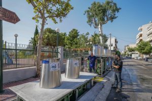 Η εγκατάσταση των υπόγειων κάδων πραγματοποιείται σταδιακά. Σε αυτό το πλαίσιο εφέτος τοποθετούνται 17 συστήματα υπόγειων κάδων και την επόμενη χρονιά 8 ακόμη.
