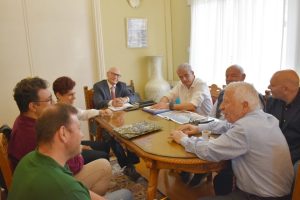 Σύσκεψη Εργασίας υπό τον Περιφερειάρχη Βορείου Αιγαίου Κωνσταντίνο Μουτζούρη για έργα που σχεδιάζει να υλοποιήσει ή χρηματοδοτεί η Περιφέρεια στα όρια του Δήμου Μυτιλήνης, πραγματοποιήθηκε παρουσία του Δημάρχου Μυτιλήνης Παναγιώτη Χριστόφα, του Αντιπεριφερειάρχη Τεχνικών Έργων Χρυσόστομου Χατζηκυριαζή, του Εκτελεστικού Γραμματέα της Περιφέρειας Αριστόβουλου Ελευθερίου και υπηρεσιακών παραγόντων.