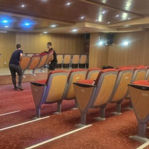 Οι εργασίες περιλαμβάνουν την τοποθέτηση νέων φωτιστικών σωμάτων τελευταίας τεχνολογίας, σύγχρονων ηχητικών συστημάτων, παρεμβάσεις αισθητικής, νέες μοκέτες, καθώς και ειδικού συνεδριακού και πολιτιστικού εξοπλισμού, που θα αναβαθμίσουν ουσιαστικά τη λειτουργικότητα και την αισθητική του χώρου.