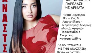 Και φυσικά θα ακολουθήσει ένα μεγάλο πάρτι στην κεντρική πλατεία. Η εντυπωσιακή αγαπημένη της νεολαίας Αναστασία θα είναι εκεί σε μια συναυλία που θα μας ξεσηκώσει. Από τις 6 το απόγευμα η πλατεία θα γεμίσει με μουσικές επιτυχίες και φυσικά πολύ χορό.
