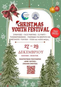 Από τις 27 έως τις 29 Δεκεμβρίου, ο Πολιτιστικός Πολυχώρος «Δημ. Χατζής» μετατρέπεται σε έναν ανοιχτό χώρο δράσεων για παιδιά, νέους και οικογένειες, γεμάτο μαγεία, δημιουργικά εργαστήρια, Science Shows, χριστουγεννιάτικες γεύσεις, διαδραστικές εμπειρίες με παιχνίδια, μουσική, τέχνη, Χριστουγεννιάτικες ταινίες, συναυλίες, DJs party και δράσεις από οργανισμούς νέων γεμίζουν το φεστιβάλ με ενέργεια και χαρά.