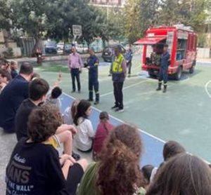 Οι πυροσβέστες πραγματοποιούν ανοιχτό διάλογο με τα παιδιά για την πρόληψη πυρκαγιών, την έγκαιρη σήµανση συναγερµού και την εκκένωση χώρων. Βιωματική δράση που οι μαθητές δείχνουν να απολαμβάνουν ιδιαίτερα.Πραγματοποιείται επίσης, παρουσίαση του Πυροσβεστικού οχήματος και του τρόπου λειτουργίας του. Τα παιδιά, χάρη στην επαγγελματική παρουσίαση των στελεχών της Π.Υ. βλέπουν από κοντά πυροσβεστικό όχημα, “παίζουν” και αυτά το ρόλο του πυροσβέστη χειριζόμενα με τη βοήθεια των πυροσβεστών την πυροσβεστική μάνικα και αναγνωρίζουν τις δεξιότητες που απαιτούνται για την άσκηση αυτού του σημαντικού επαγγέλματος. Με τον τρόπο αυτό αναπτύσσεται η Πυροσβεστική Παιδεία των μαθητών.