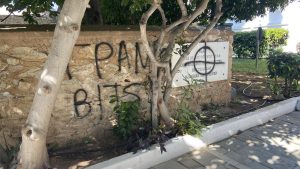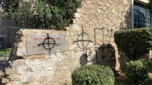 Φασιστοειδή βεβήλωσαν με ακροδεξιά συνθήματα ση Μάντρα Μπλόκου Κοκκινιάς που αποτελεί ένα από τα σημαντικότερα μνημεία Αντίστασης στην Ελλάδα.