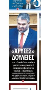Έγραψε συγκεκριμένα η εφημερίδα ΔΗΜΟΚΡΑΤΙΑ με τίτλο «Χρυσά κέρδη για την οικογένεια Βρεττάκου την 6ετία Μητσοτάκη- Η εταιρία που ανήκει σε δύο μέλη της οικογένειας του βουλευτή της Ν.Δ. Γιώργου Βρεττάκου αυξάνει θεαματικά τα κέρδη της» :