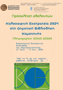 Γίνε και εσύ εθελοντής της Καλοκαιρινής Εκστρατείας 2024 στη Δημοτική Βιβλιοθήκη Κομοτηνής!!!