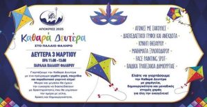 Ο Δήμος Παλαιού Φαλήρου γιορτάζει την Καθαρά Δευτέρα με ένα πρόγραμμα γεμάτο χαρά, παιχνίδια και παραδοσιακό γιορτινό κλίμα! Μικροί και μεγάλοι θα έχουν την ευκαιρία να διασκεδάσουν με δραστηριότητες που θα γεμίσουν την ημέρα με γέλιο, δράση και δημιουργικότητα.