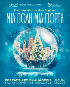 Τη Δευτέρα 8 του μηνός , θα πραγματοποιηθεί η έναρξη του χριστουγεννιάτικου Πάρκου των Χρωμάτων, στο Δήμο Αγ. Δημητρίου. Η μεγάλη συναυλία με την Κλαυδία που θα σηματοδοτήσει και την επίσημη πρεμιέρα θα ξεκινήσει στις 20:00.