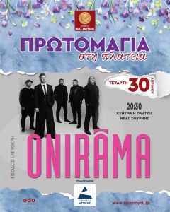 Οι ONIRAMA γεμίζουν τις αποσκευές τους με τις μεγαλύτερες επιτυχίες τους, τα πιο αγαπημένα τραγούδια τους και την καλύτερή τους διάθεση κι έρχονται στην Κεντρική Πλατεία Νέας Σμύρνης την Τετάρτη 30 Απριλίου στο πλαίσιο των Πρωτομαγιάτικων εκδηλώσεων του Δήμου.