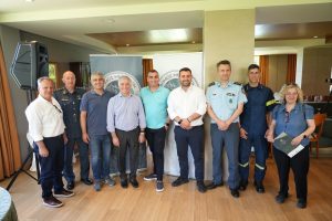 Δεν παρέλειψε να εξάρει τη βούληση των Δημάρχων Μετεώρων Λευτέρη Αβραμόπουλου και Βελβεντού Εμμανουήλ Στεργίου να προχωρήσουν δημιουργικά και συνεργατικά πάνω σε ένα δύσκολο τομέα που αφορά την Πολιτική Προστασία.