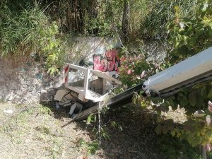 Το ατύχημα συνέβη όταν καλαθοφόρο του δήμου ανετράπη την στιγμή που είχε ανυψώσει το “καλάθι”στο οποίο επέβαινε εργαζόμενος της υπηρεσίας ηλεκτροφωτισμού.