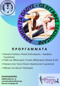 Αρχίζει η υλοποίηση των προγραμμάτων στο Δήμο Φλώρινας. Τα προγράμματα θα λειτουργήσουν έως 31/07/2024 και το κόστος συμμετοχής είναι πέντε (5) ευρώ μηνιαίως. Το πρόγραμμα «Άθληση στο Βουνό» θα υλοποιηθεί την περίοδο 09/05/2024 – 31/07/2024.
