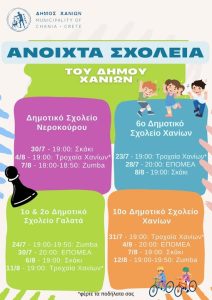 Με ιδιαίτερη επιτυχία διεξάγεται το πιλοτικό πρόγραμμα του Δήμου Χανίων «Ανοιχτά Σχολεία», αφού καθημερινά δεκάδες παιδιά συγκεντρώνονται στις σχολικές αυλές των σχολείων, που συμμετέχουν στο πρόγραμμα, για παιχνίδι και δημιουργική απασχόληση.