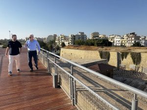 Αλέξης Καλοκαιρινός και Γιώργος Σισαμάκης είχαν την ευκαιρία να συνομιλήσουν με πολίτες που απολάμβαναν την βόλτα τους επάνω στα Τείχη και να δουν επί τόπου διάφορες τεχνικές λεπτομέρειες. Παράλληλα, έστειλαν το μήνυμα ότι με την επικείμενη παραχώρηση των Ενετικών Τειχών από το Υπουργείο Πολιτισμού στον Δήμο Ηρακλείου, το σύνολο αυτού του προμαχωνικού συστήματος, με το ισόπεδο μέρος, τη τάφρο, τις στρατιωτικές στοές τις αστικές πύλες, τις χαμηλές πλατείες, θα αποδώσει πολλαπλάσιο όφελος στους ανθρώπους της πόλης.