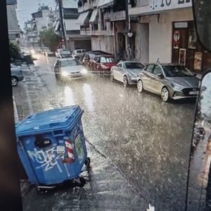 Όπως επίσης δεν είναι δυνατόν μέσα σ΄αυτό το χαμό ( δημοσιεύουμε και σχετική φωτο με την ένταση της βροχής σ΄εκείνο το σημείο) , να σηκώσεις τις σχάρες , να καθαρίσεις και να βγάλεις τη λάσπη και ότι άλλο είναι συσσωρευμένο εντός αυτών, με το νερό να το πλημμυρίζει συνεχώς.