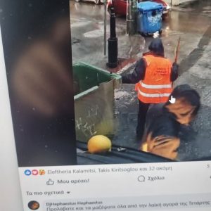 Έλα όμως που υπάρχουν φωτογραφίες που δείχνουν να είναι συμβασιούχοι με τα ΚΑΛΟΚΑΙΡΙΝΑ γιλεκάκιαπου γράφουν « Δήμος Νίκαιας» , οι οποίοι την ώρα της νεροποντής προσπαθούν « μουλιασμένοι» από το νερό , χωρίς αδιάβροχα να καθαρίσουν το δρόμο που είχε γίνει νωρίτερα λαική; Σ΄αντίθεση με τους μόνιμους υπαλλήλους που φορούν κίτρινα αδιάβροχα;