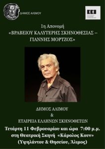 Ο Δήμος Αλίμου και η Εταιρεία Ελλήνων Σκηνοθετών συνέπραξαν, για να τιμήσουν μία ξεχωριστή προσωπικότητα του σύγχρονου ελληνικού πολιτισμού, τον ηθοποιό, σκηνοθέτη και συγγραφέα Γιάννη Μόρτζο. Η σύμπραξη αυτή οδήγησε στην καθιέρωση ενός νέου θεσμού στον χώρο του σύγχρονου ελληνικού θεάτρου: το «Βραβείο Καλύτερης Σκηνοθεσίας – Γιάννης Μόρτζος».