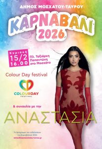 Η μεγάλη παρέλαση του καρναβαλιού με τους χιλιάδες καρναβαλιστές θα διεξαχθεί την Κυριακή, 15 Φεβρουαρίου 2026, στις 14.00, στη Λ. Μακρυγιάννη στο Μοσχάτο, ενώ μετά το τέλος της μεγάλης παρέλασης, στις 16.00 θα ακολουθήσει συναυλία με την ΑΝΑΣΤΑΣΙΑ, αλλά και το Colour Day Festival που για άλλη μία χρονιά θα δώσει χρώμα στη γιορτή μας!