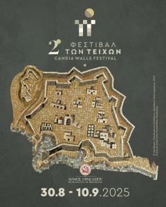 Με περισσότερες από 40 εκδηλώσεις μουσικής, χορού, θεάτρου, κινηματογράφου, λογοτεχνίας, ιστορίας, αστροπαρατήρησης, φωτογραφικών εκθέσεων, ομιλιών, καλλιτεχνικών performance, εργαστηρίου και μουσικών παραστάσεων με επίκεντρο τα κρουστά και σε ακόμα περισσότερα σημεία των Τειχών που μας καλούν να τα γνωρίσουμε, έρχεται το 2ο Φεστιβάλ των Τειχών – Candia Walls Festival του Δήμου Ηρακλείου, από το Σάββατο 30 Αυγούστου ως την Τετάρτη 10 Σεπτεμβρίου 2025.
